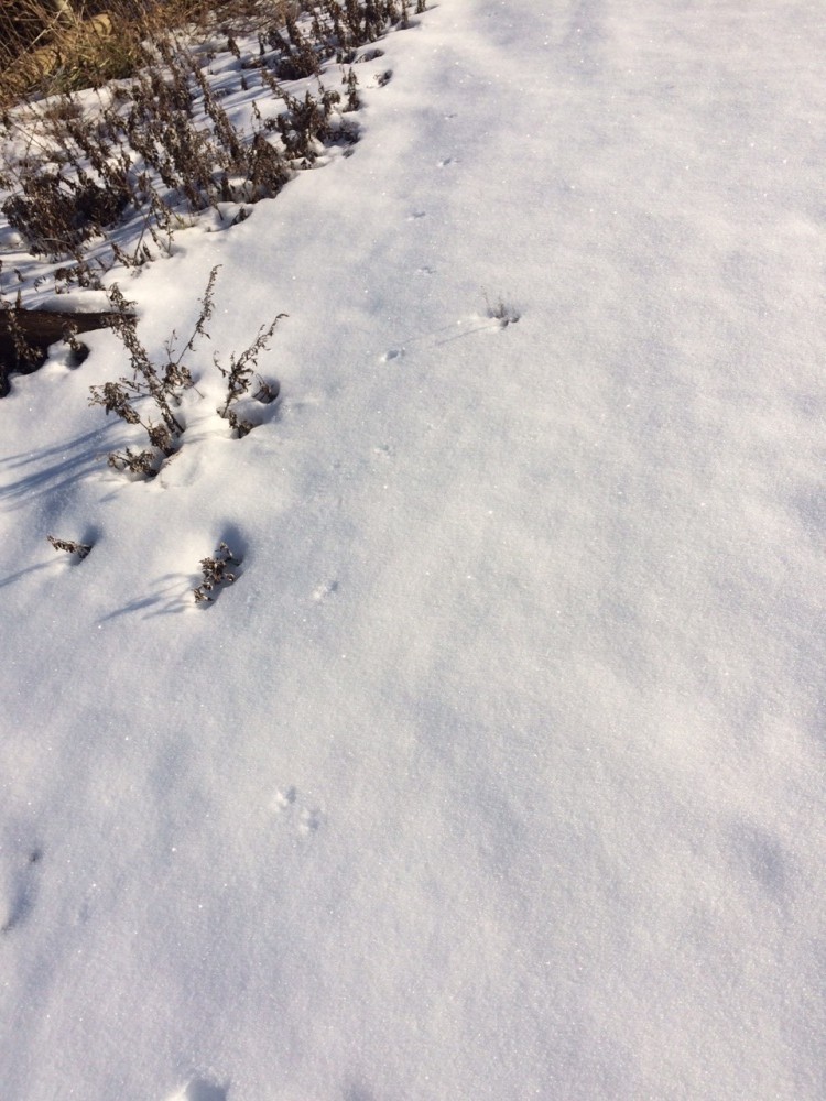 朝日を浴びてキラッキラッ輝く雪の上にちっちゃな足跡!